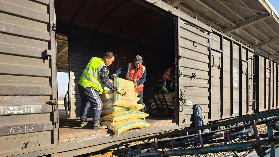 春節(jié)期間,當(dāng)滿載化肥的列車到站后,中農(nóng)(內(nèi)蒙古)農(nóng)資公司員工冒著嚴(yán)寒,堅(jiān)守一線,緊張有序地組織卸貨、清點(diǎn)、搬運(yùn)等工作,為春耕農(nóng)資保供做好準(zhǔn)備工作。